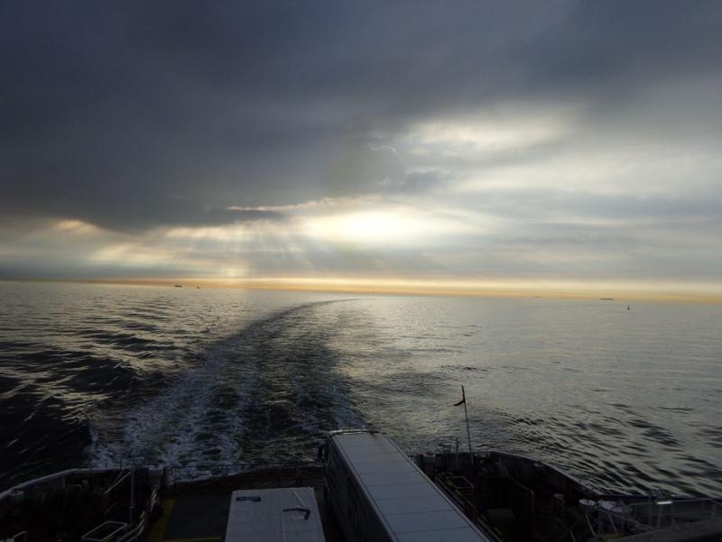 Kurz vor 04 Uhr waren wir dann auch am Pier und konnten uns einreihen (2 Autos warteten tatsächlich schon vor uns). Die Passkontrollen waren reine Formsache, sodass wir in der Warteschlange und anschließend im Loungebereicht der Fähre etwas schlafen konnten.